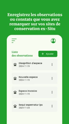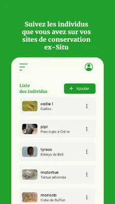 • Ajoutez facilement les informations sur les individus appartenant à une espèce présente sur un site de conservation.