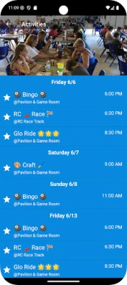 Browse scheduled activities, check out exciting upcoming weekends, and explore resort amenities or the on-site camp store. Navigate easily using the interactive map, keep tabs on the weather, and access quick info about food options and nearby attractions. Whether you're booking a reservation, checking in as a seasonal member, or looking for the latest from the team, it’s all at your fingertips.