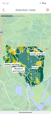 Features: - Interactive map: The interactive map guides you through the heathland and provides exciting facts about our landscape. - What's crawling and growing there: Our comprehensive species lexicon accompanies you on hikes and gives you an introduction to our flora and fauna. - Outdoor rally: Similar to a digital treasure hunt, this game makes your stay interactive and entertaining. How well do you know the heath? - Virtual experiences: A virtual 360° journey gives you an insight into our "wild" core zone. Get to know European bisons and Przewalski's horses better.